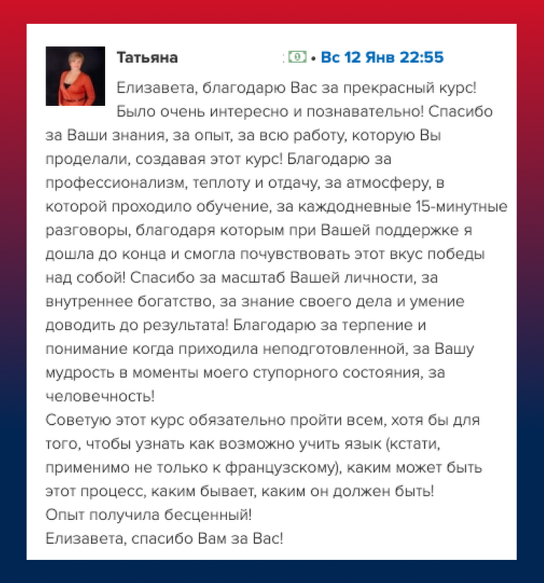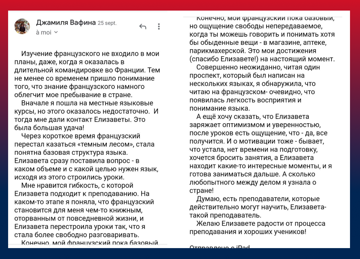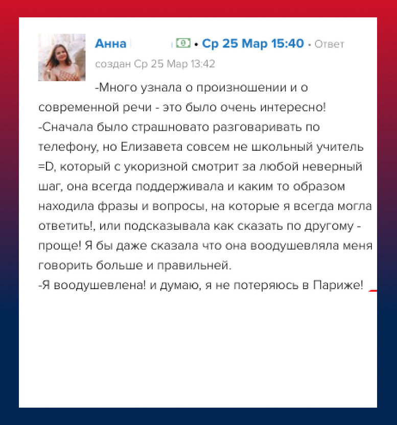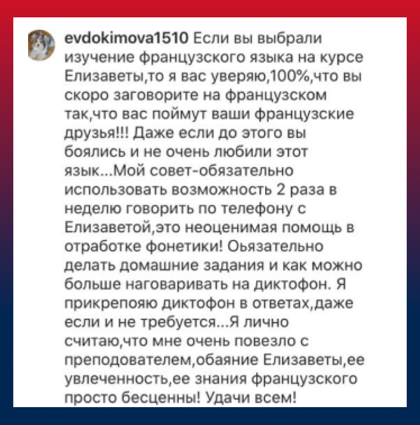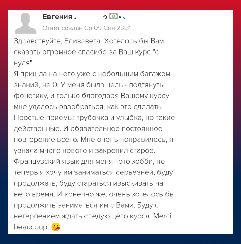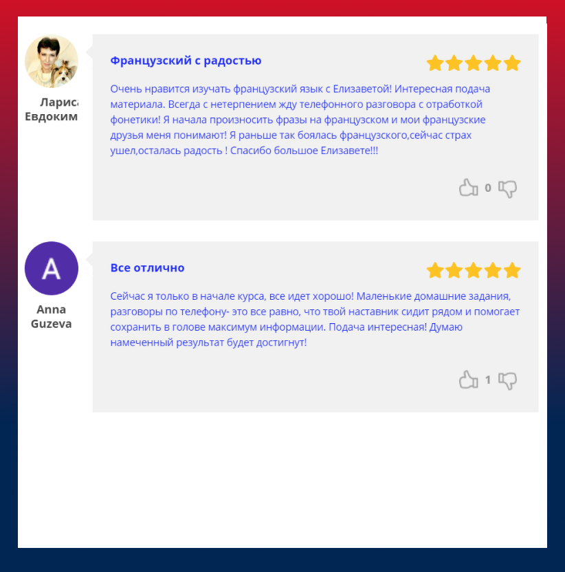 Отзывы студентов о курсах по французскому языку Елизаветы Белозерской