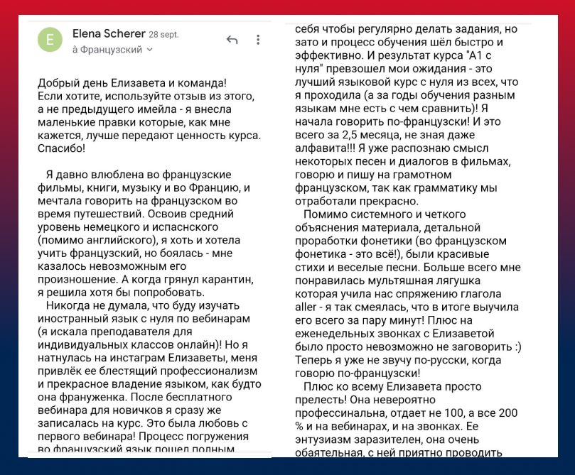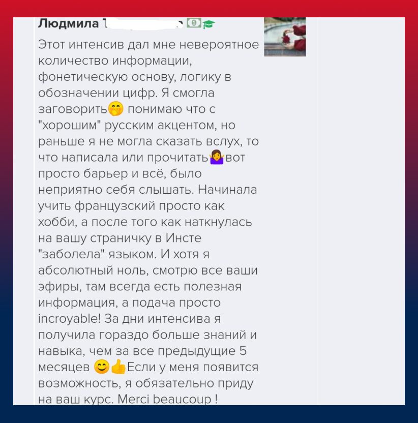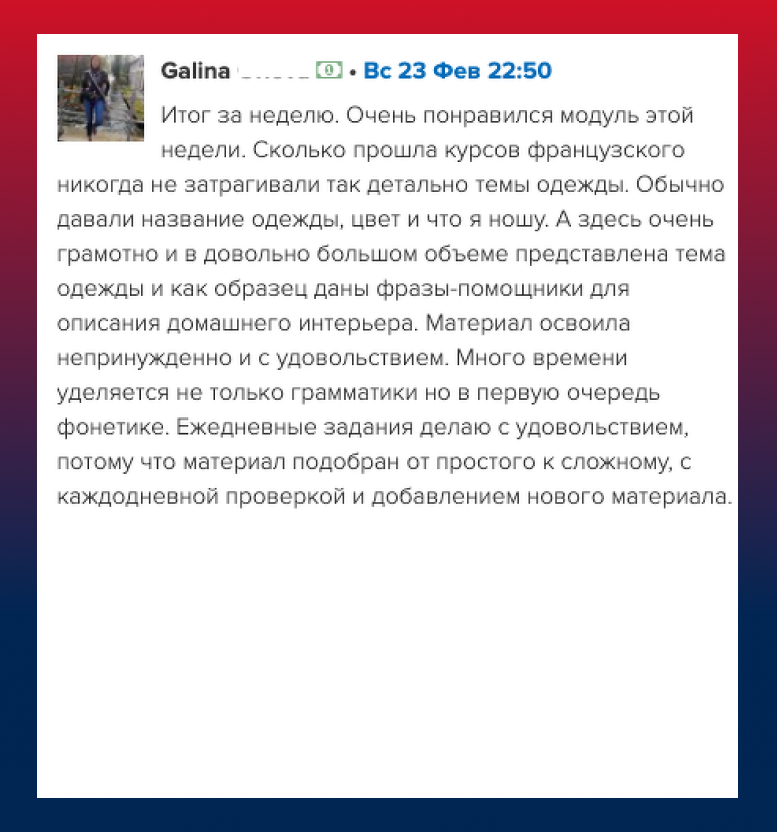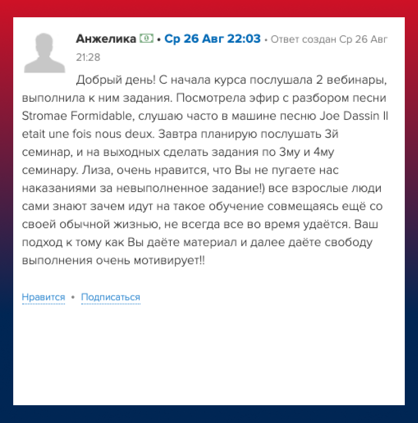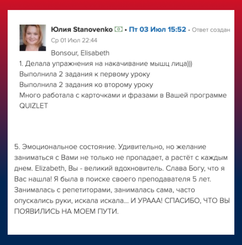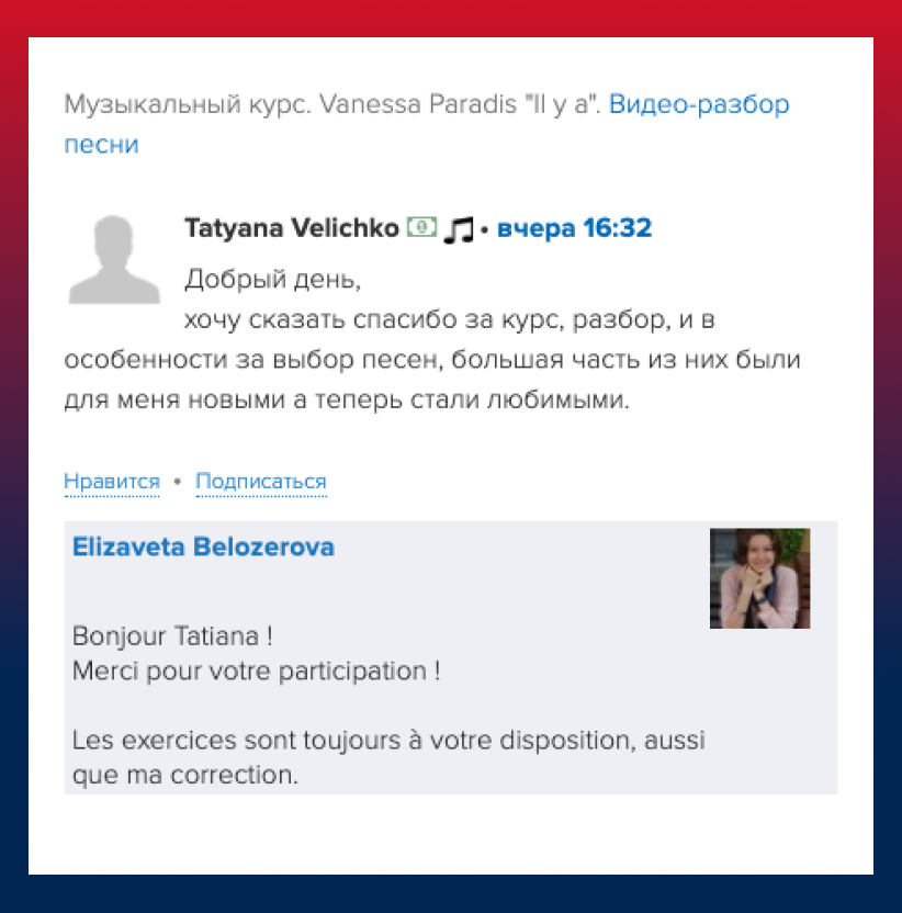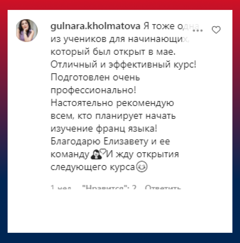 Отзывы студентов о курсах по французскому языку Елизаветы Белозерской