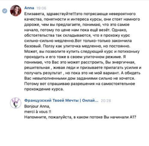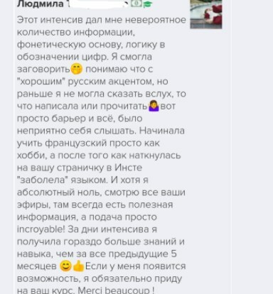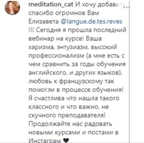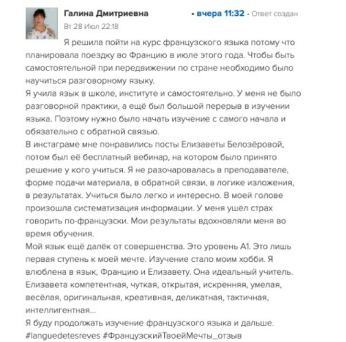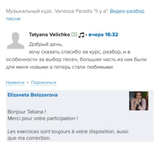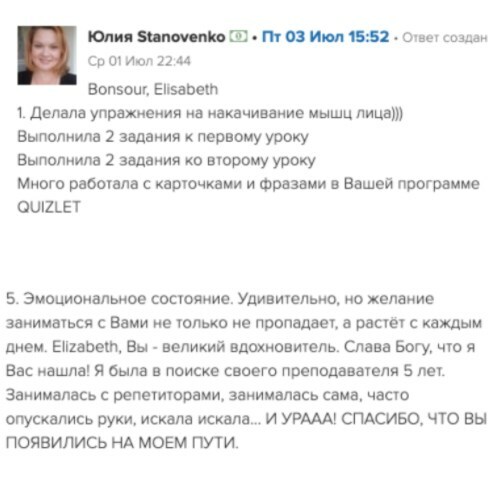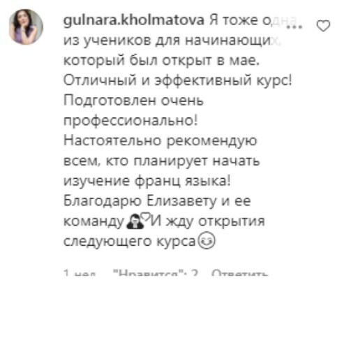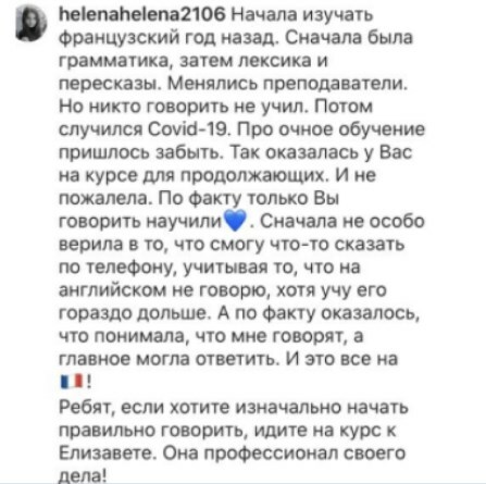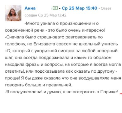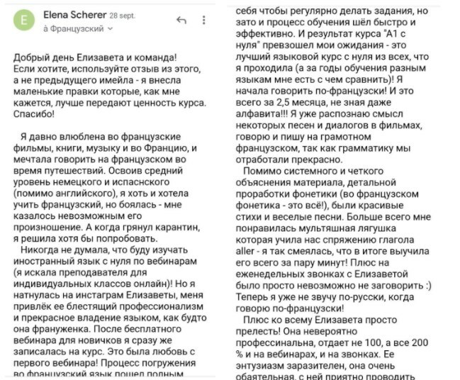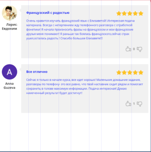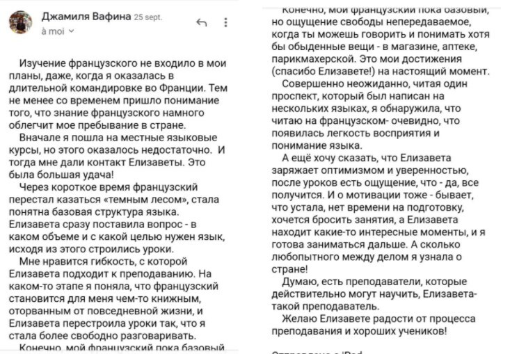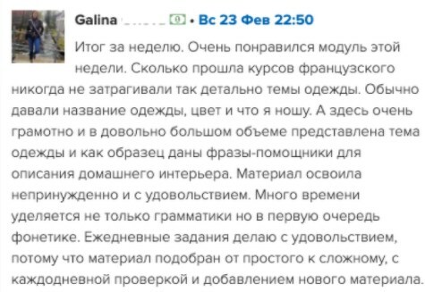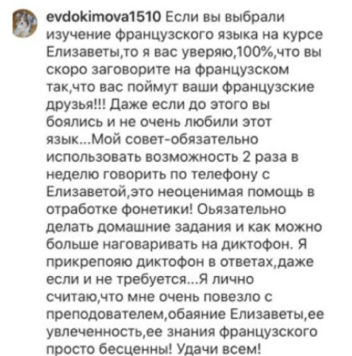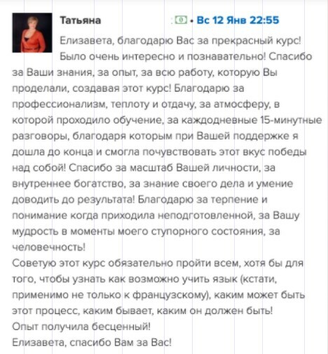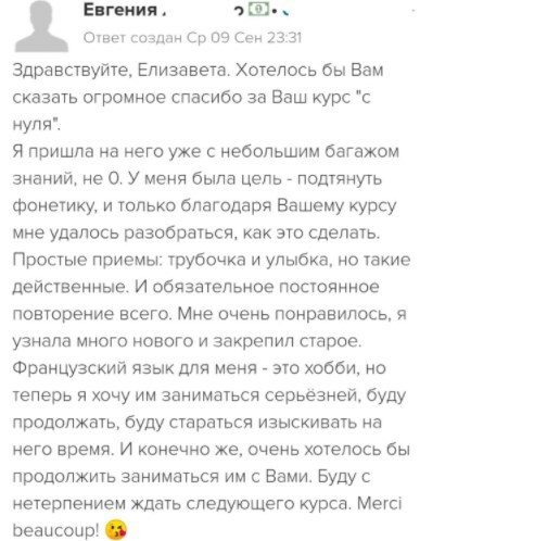 Отзывы студентов о курсах по французскому языку Елизаветы Белозерской